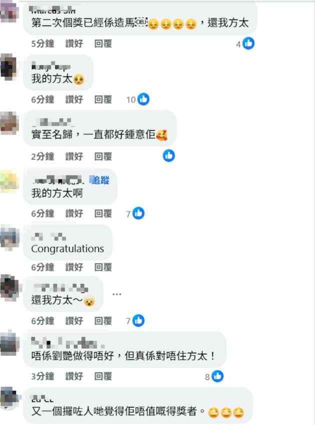 但大批网友似乎不满,似乎更认可龚慈恩在《新闻女王 2》里饰演的方太的演技。网友纷纷留言:“还我方太!”“为什么不是龚慈恩?”“这奖第二次是黑幕了,还我方太!”“不是刘艳演得不好,实在是太对不起方太了!”“Why not 方太,还我方太!”“方太好太多了” 等。不过也有网友力挺王敏奕:“实至名归,一直都很喜欢她”。