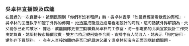 成龙71岁生日当天,吴卓林发了条加密动态。