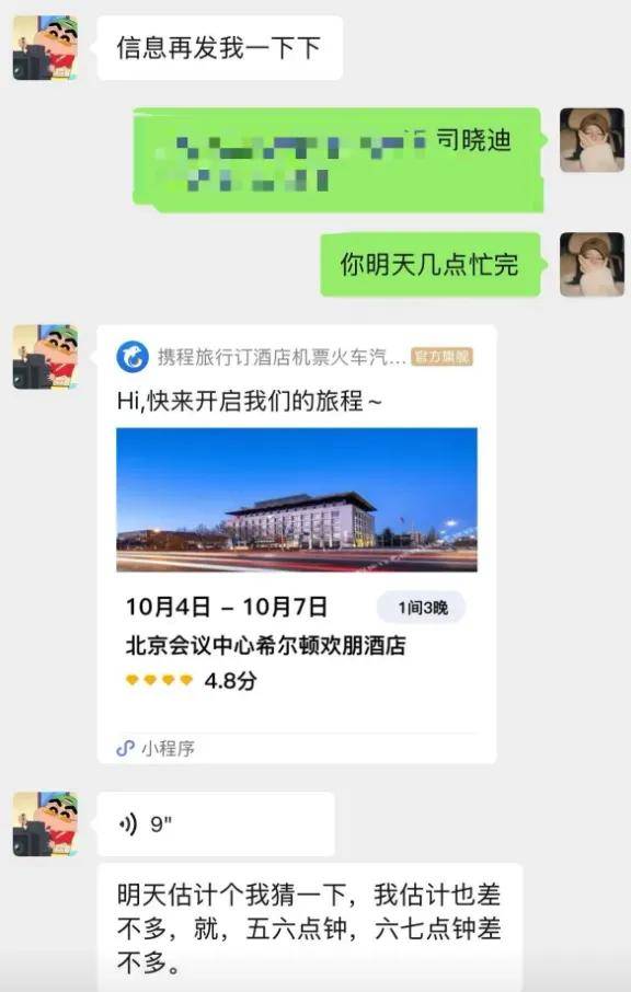 在司晓迪晒出的聊天记录里,两人从早问候到晚,言语熟稔。不仅关心对方的游戏技术,还有订房间这种私密信息,周奇让司晓迪把个人信息发过来帮忙订酒店,两人还对齐了见面时间。