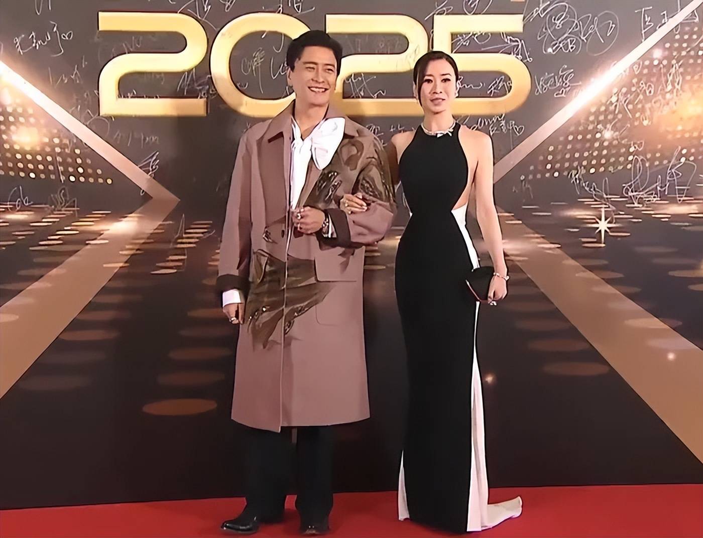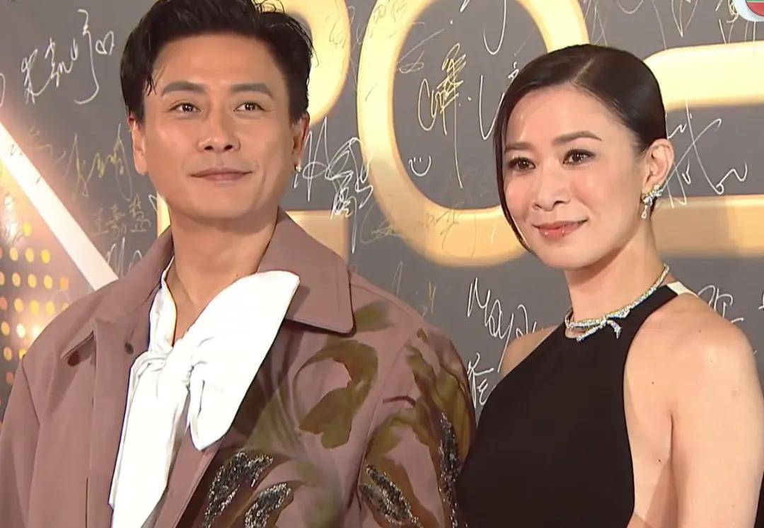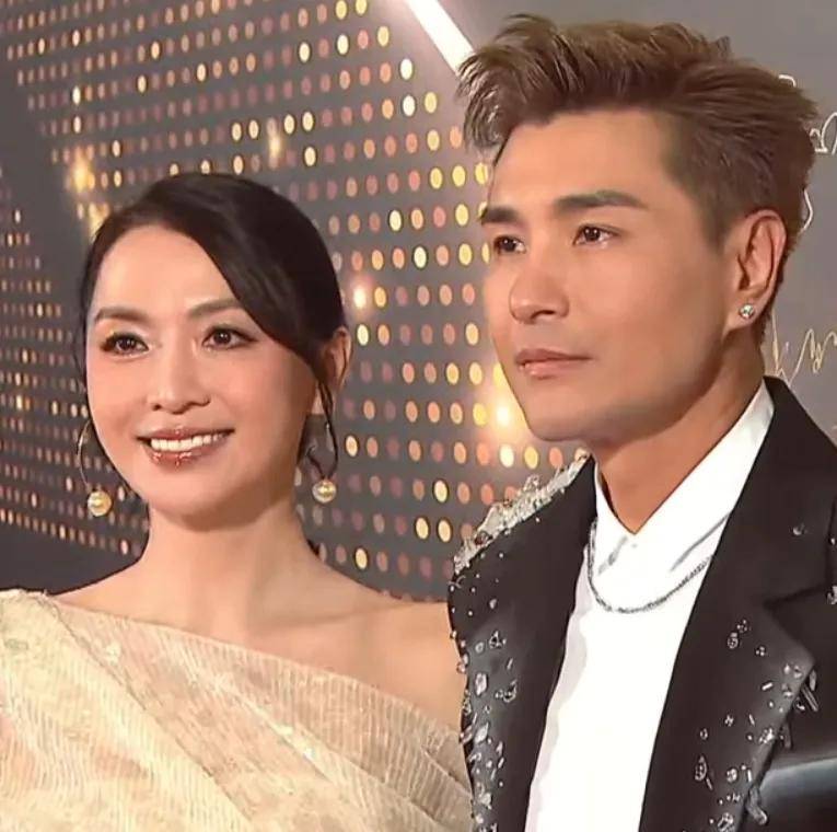 陈炜和陈展鹏一起走红毯,陈炜52岁、陈展鹏48岁,加起来正好100岁,TVB颁奖礼红毯上的熟面孔年纪都不小了。