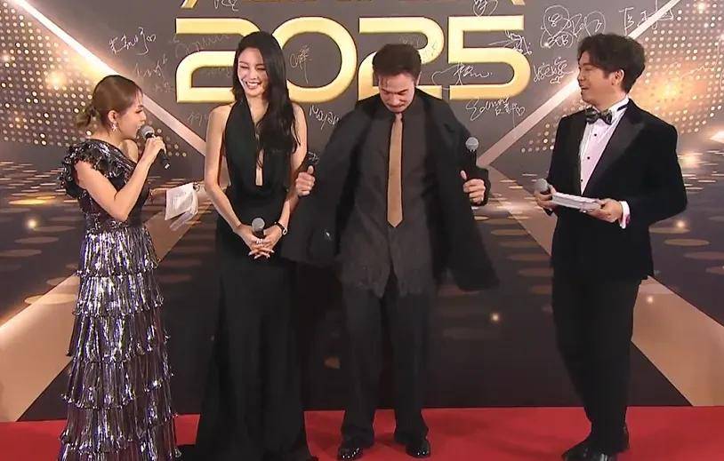 陈豪都54岁了!不知道是红毯灯光影响,还是他没休息好,整个人仿佛老到眼睛睁不开,拉开衣服展示蕾丝内搭的时候,好像一个老大爷。