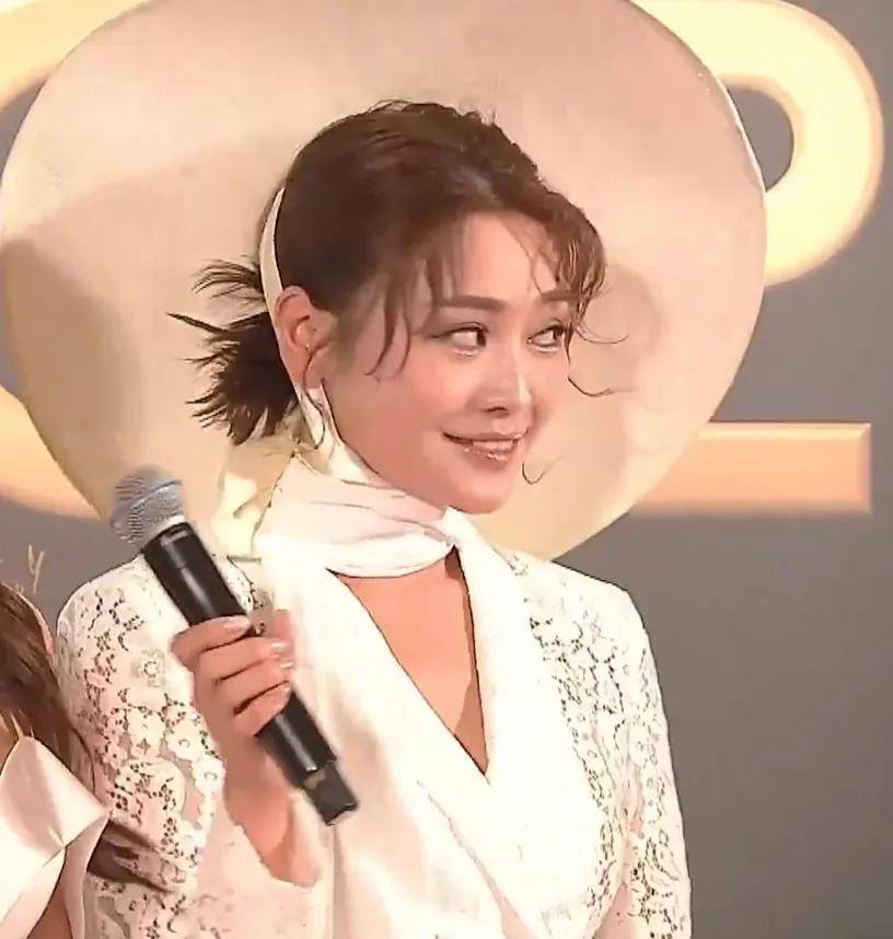 44岁李施嬅的脸变了,有点肿有点油,不知道是不是妆容影响。