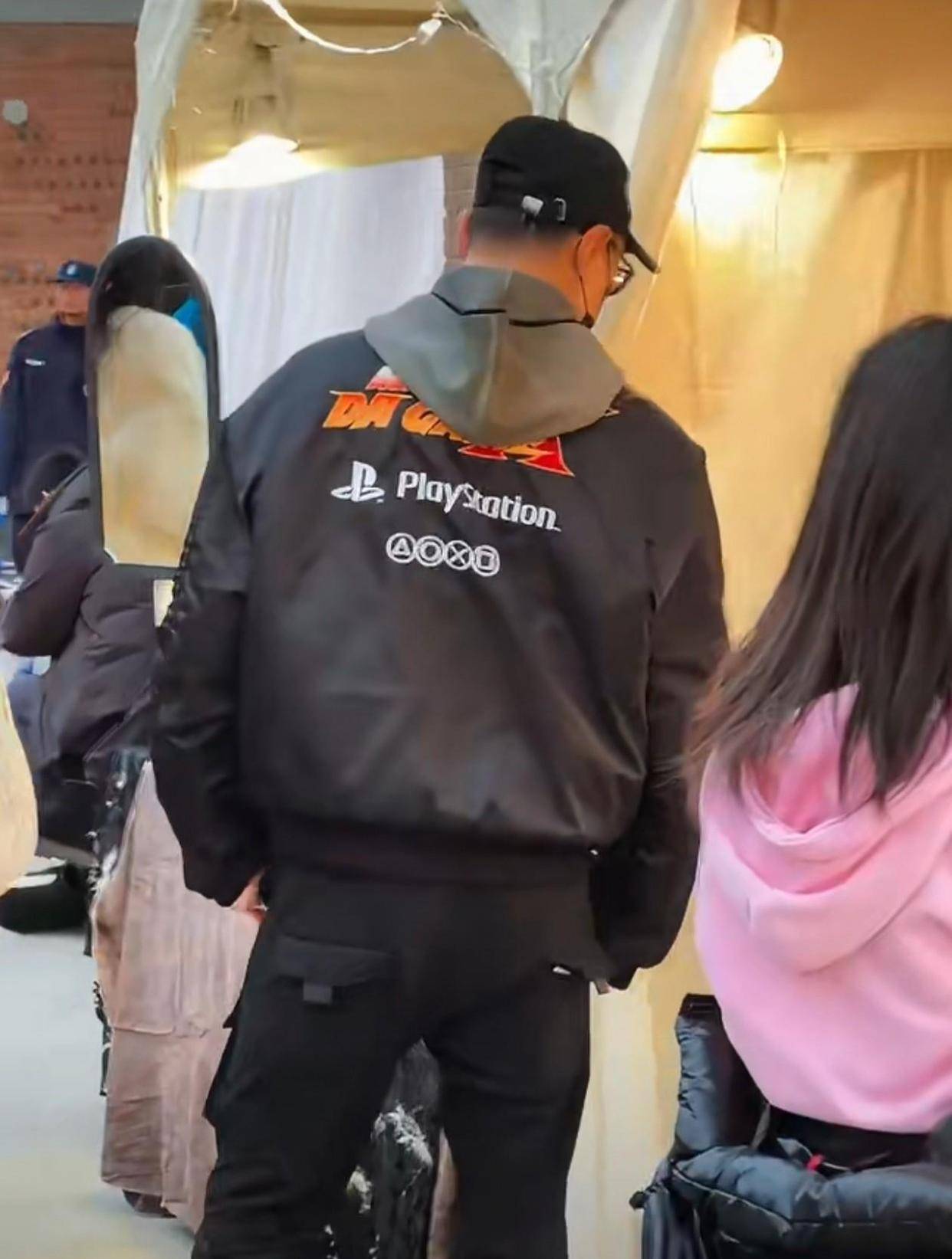 爸爸还是一如既往地穿着黑色上衣配黑色紧身裤,没多大变化。