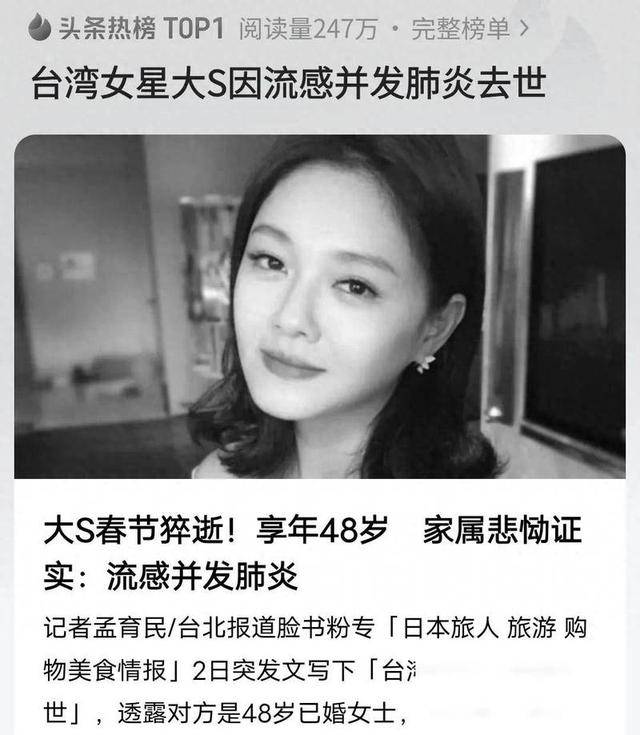 要知道大S也才四十多岁,还有大半年华等她去度过,没曾想却突传噩耗。