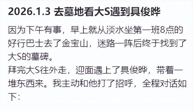 就在元旦过完的第三天,具俊晔竟然出现在了大S的墓地中。