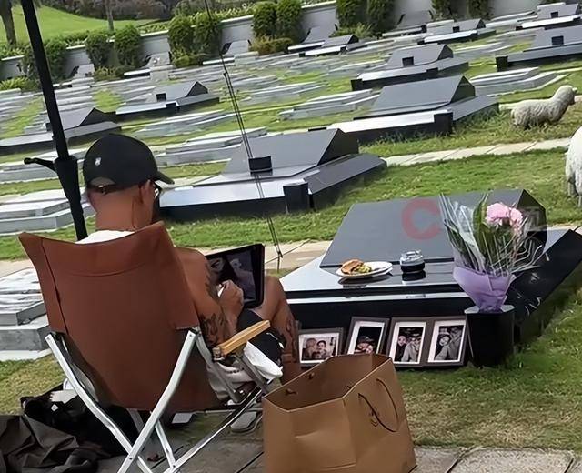 当时具俊晔打着伞,默默地坐在大S的墓前,怀里放着平板,墓前摆满了两人的甜蜜合照。