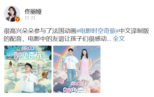 9岁的小酒窝长大了不少,也长开了,越来越美了,在1月5日还和妈妈一起拍了新年美照,这转头佟丽娅就晒出朵朵和小酒窝一起合作的宣传照来,配文:很高兴朵朵参与了法国动画中文译制版的配音,和小酒窝一起为电影《时空奇旅》配音,朵朵肉眼可见的开心。