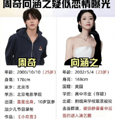 而且向涵之这些年在娱乐圈处境与周奇差不多,出道多年,但也没啥名气和存在感。之前在陈晓主演的大男主剧《大生意人》中演配角不出彩,还强行与朱亚文炒作CP失败。结果作品不火,绯闻却火了,除了与周奇的绯闻,之前还传与吴磊的绯闻,看来也是年龄不大名气不大却是绯闻体质的女演员,这样一看周奇向涵之还挺像。