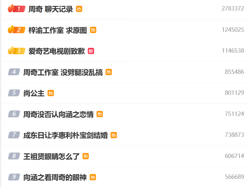只是没想到有心栽树树不发,无心插柳柳成荫。周奇出道多年,作品不断,关注度不高,没怎么上过热搜,也没刻意营销。但是最近却因为私生活被爆料霸屏热搜,看似让他有了热度和存在感,只可惜不是雪中送炭锦上添花,而是适得其反败好感。