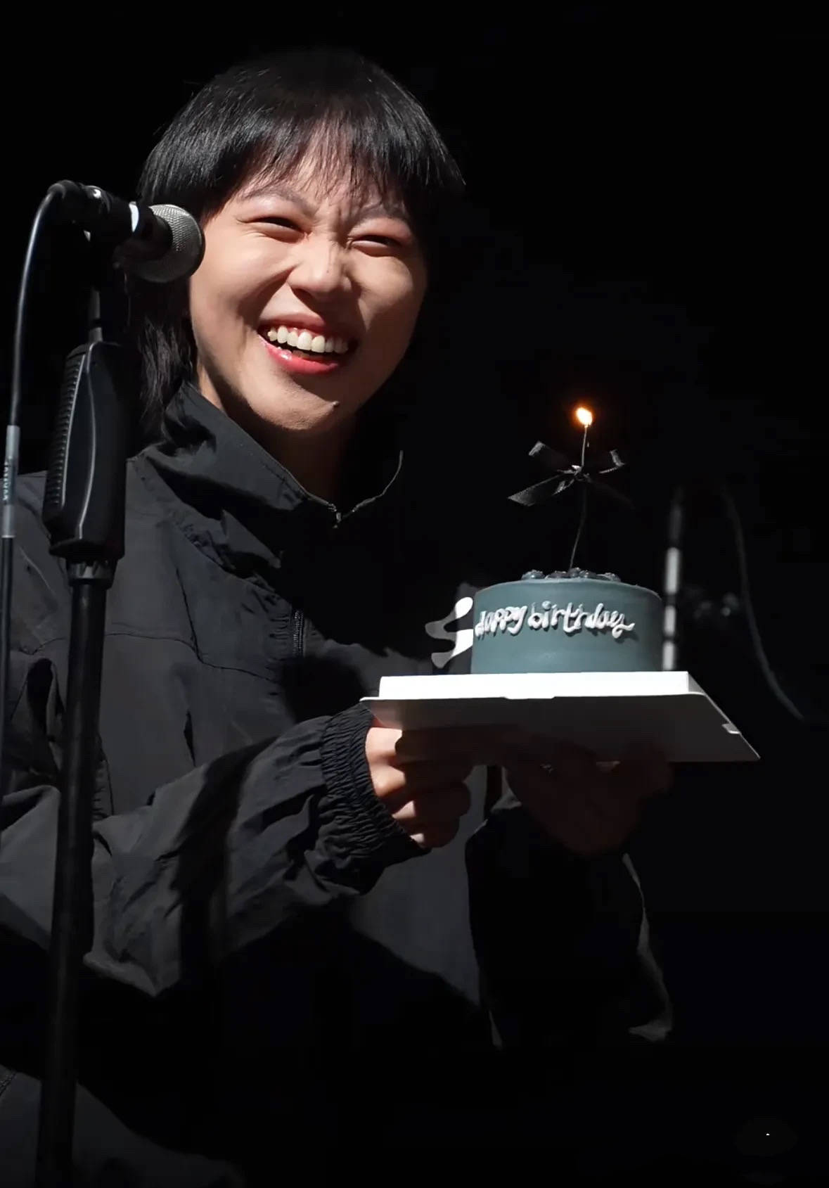 窦靖童在台上过生日,手里拿着蛋糕、还在现场吹了蜡烛。粉丝们太幸运了,看场音乐会顺道陪着童童过了生日。