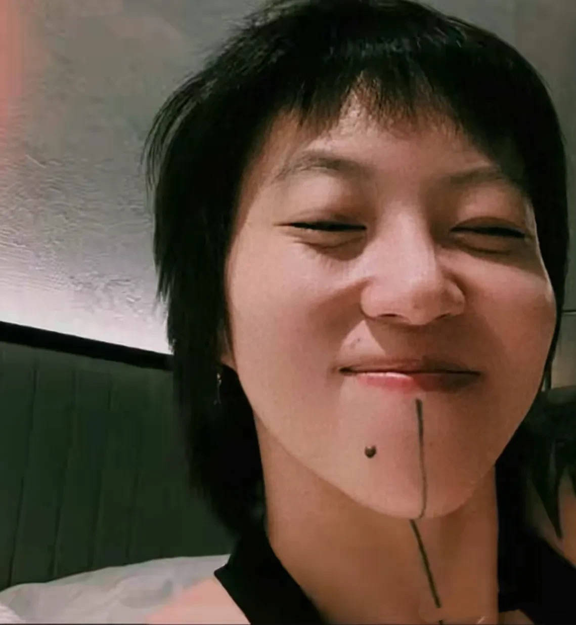 现场很热闹,窦靖童也超开心。她大笑的时候满脸皱纹,眼角、脸颊、甚至额头,都有很深的纹路。