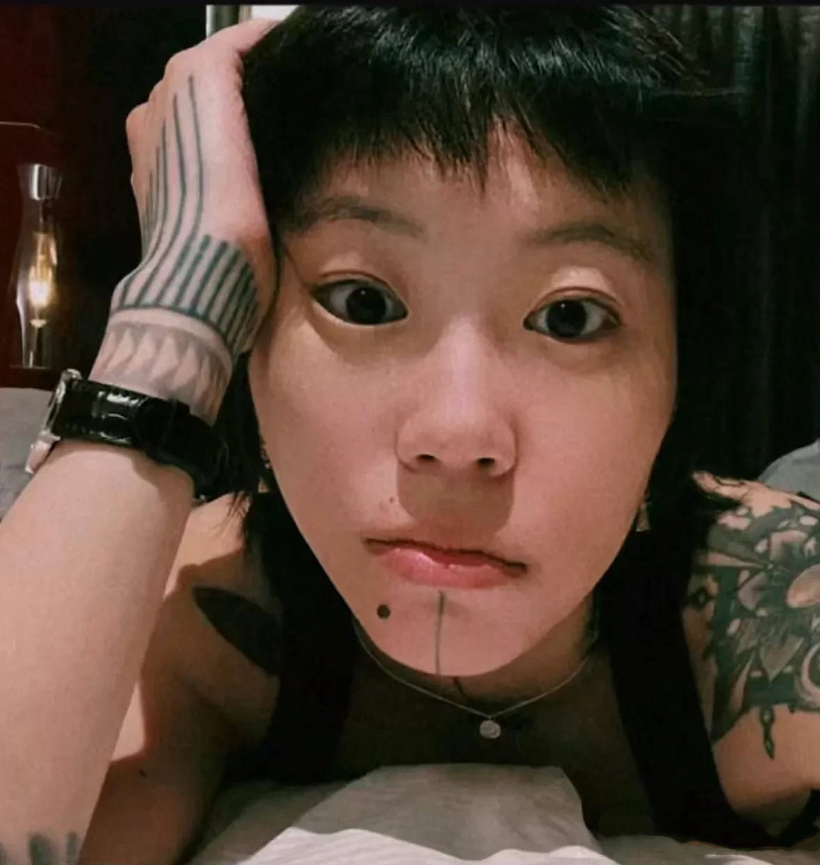 窦靖童还晒了自己的“私房照”,她穿黑色小背心、露出身上的纹身,眼睛大的像铜铃,这样看倒是有几分清冷。