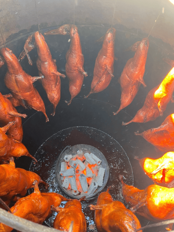 烤炉中那已经烤的金黄酥脆的鸭子,看着都好美味。