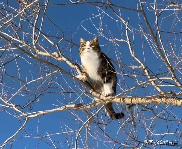 在新疆的美丽风景中,猫咪一会在雪地里打滚,一会又爬上树,生活的自由自在。