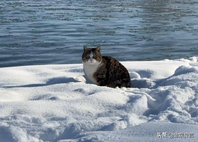 当时天色灰暗,白茫茫雪地里突然跑来一只小猫,它像是有目的似的,直接奔着博主的房车而来。