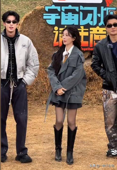 白鹿刚到录制现场时,在黄土高坡的环境中,穿着小香风的上衣、搭配高跟黑靴,有些格格不入。