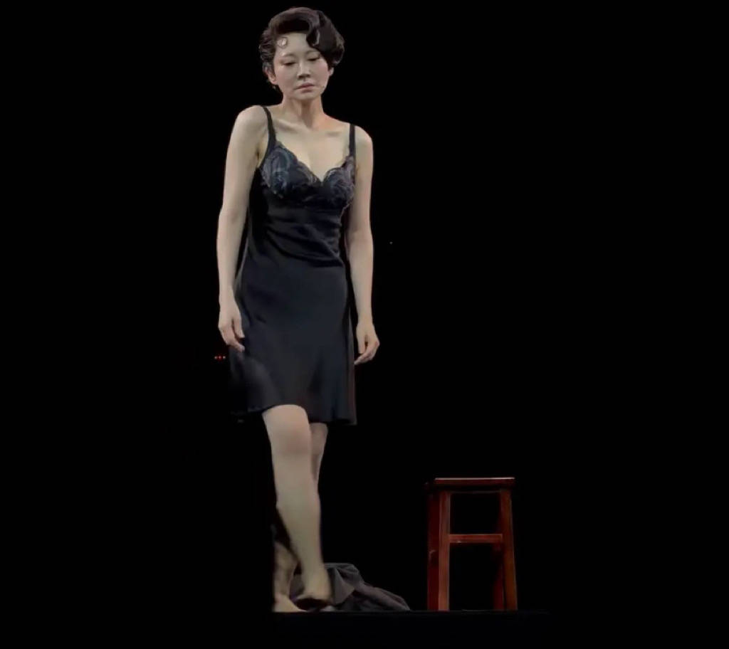 话剧中许晴早期作为上海名妓,穿着性感的蕾丝裙,复古风的盘发尽显风情。身材干瘦、倒显得少了那么点风情。