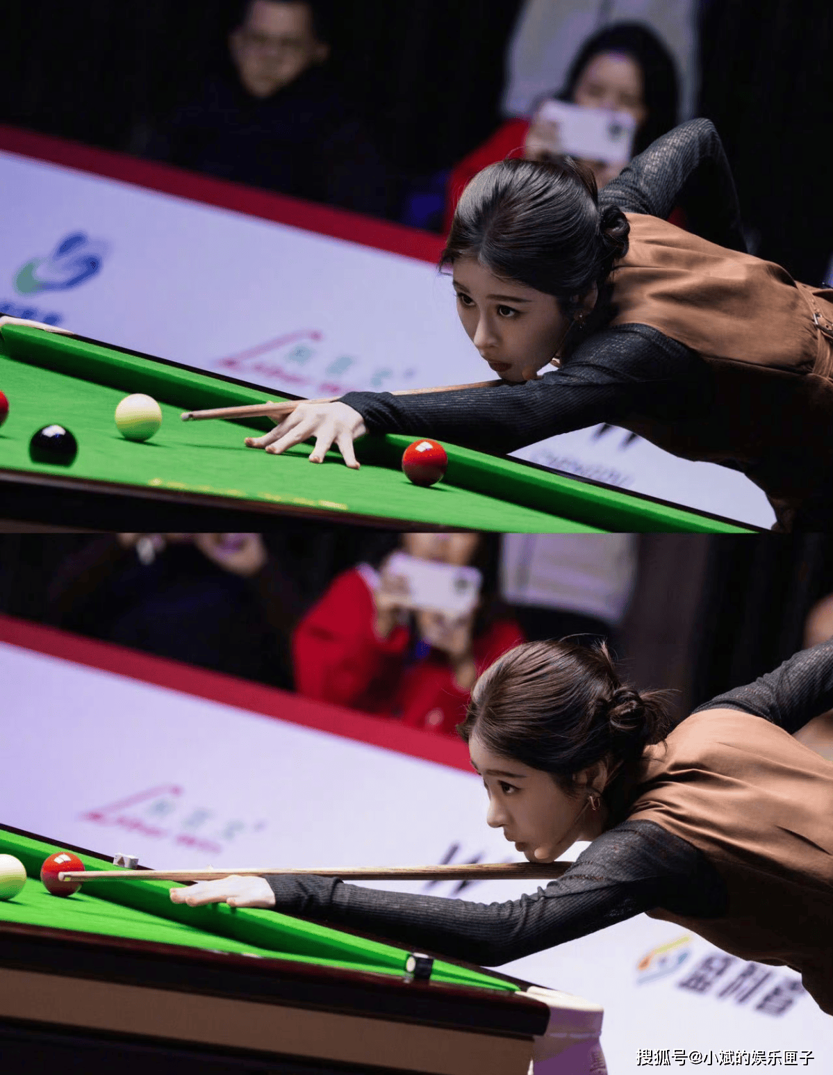 活动当天,张碧晨以休闲干练的造型现身斯诺克赛场,起初观众或许带着几分戏谑,但很快被她展现的专业技巧打破偏见。比赛过程中,她时而俯身观察球局,时而轻巧击球,动作专业流畅。随着比赛深入,张碧晨的得分势头愈发猛烈,连续得分让现场观众惊叹不已。真正引爆全场的是那一杆bank shot——球在台边巧妙反弹精准入袋,直接加6分锁定战局,引发雷鸣般欢呼,张碧晨成为当晚最耀眼的明星。