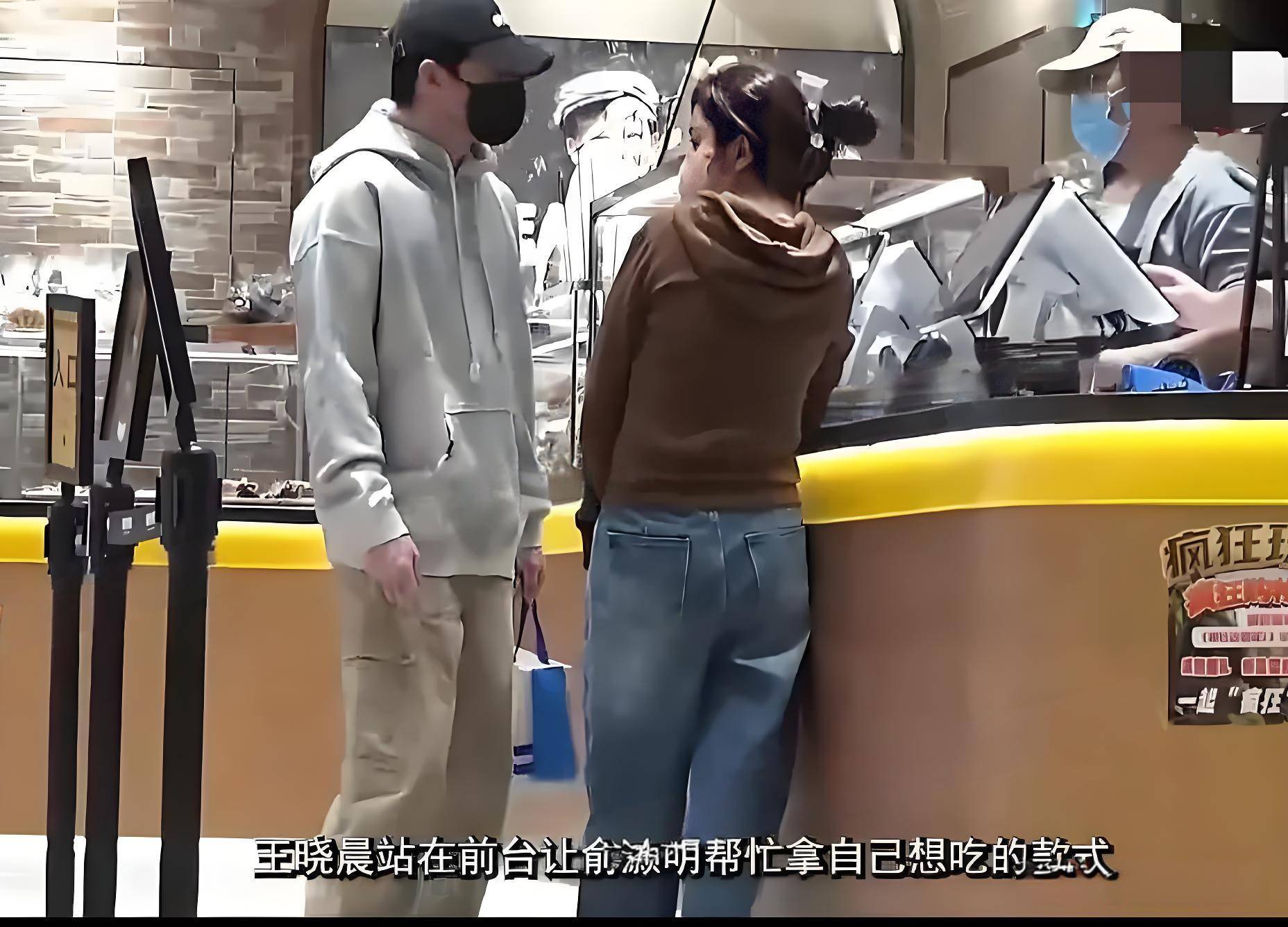 进入商场后,意外状况发生了,俞灏明发现自己忘记拿东西,于是便让王晓晨留在原地等候。他匆匆返回,不一会儿又回到了王晓晨身边。之后两人又手牵手来到了面包店。