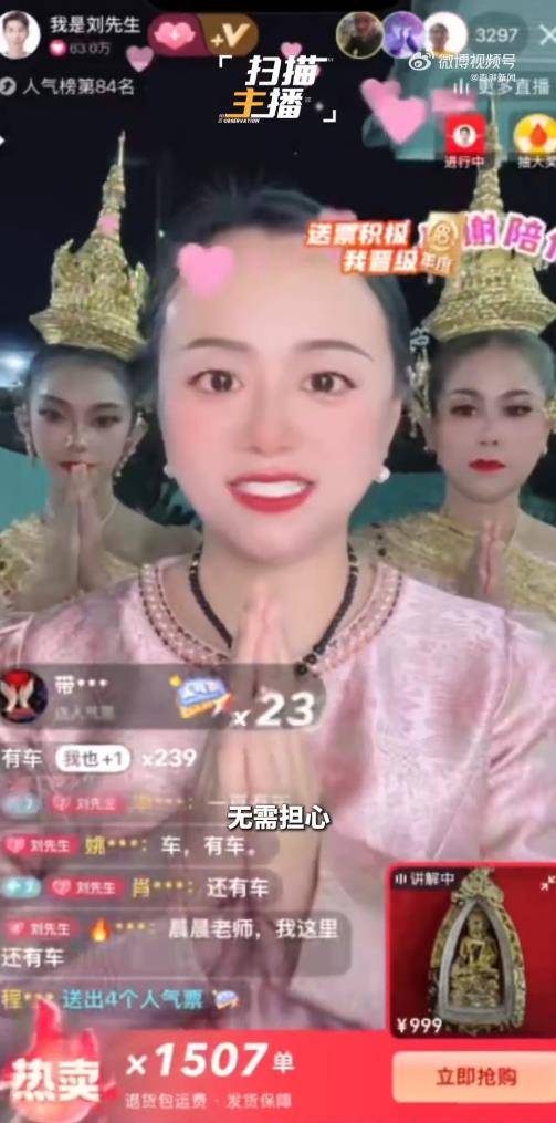 这套骗术的核心,是一个完全虚构的“无忧老祖”人设。主播“程程正能量”与其丈夫运营着“我是刘先生”等多个关联账号,全网粉丝近百万,他们精心编排剧情,在直播中不断强化“无忧老祖”的“神力”,话术直击老年人软肋:“保你们无忧,福气满满”。而那个售价999元的“佛牌”吊坠,就是通往“无忧”世界的门票。