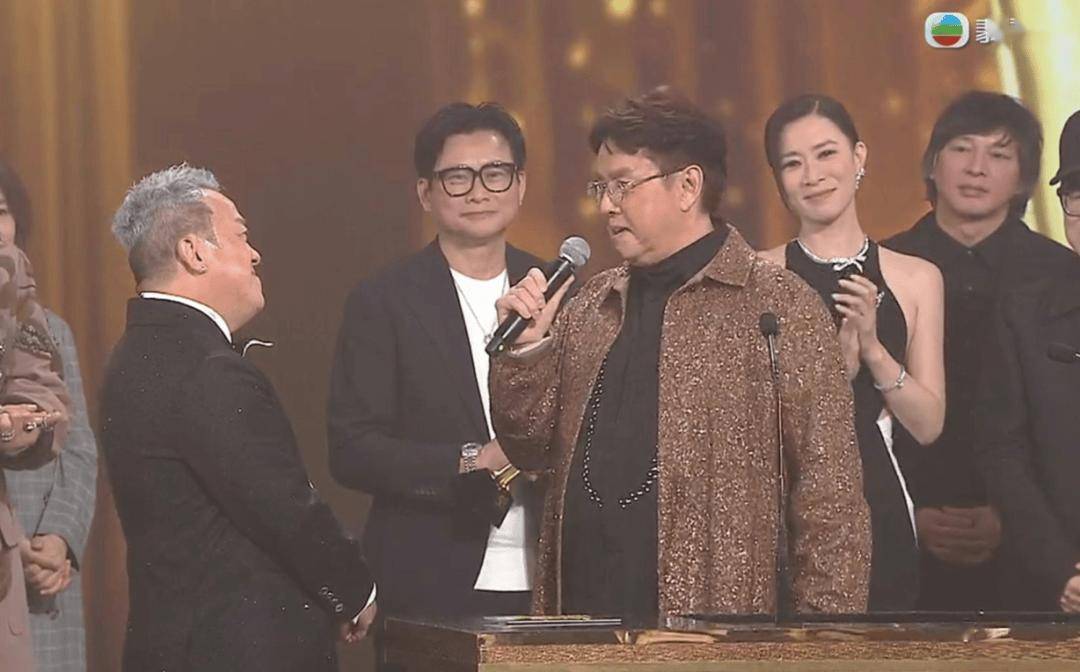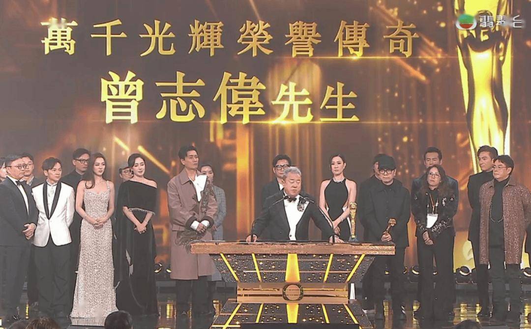 TVB颁奖礼上,大会将“最佳剧集奖”颁给《新闻女王2》后,电视广播有限公司主席许涛上台发言:“大家好!首先,让我们再次恭喜今晚所有获奖的台前幕后工作人员。现在,颁奖典礼来到最后一个环节。今年,我们特别增设了一个奖项——万千星辉荣誉传奇大奖,以此向一位传奇人物致敬。这位重量级人物,在过去数十年间,为TVB作出了重大贡献。事实上,他的贡献不止于TVB,即便是在整个香港演艺界,他也始终尽心尽力、倾尽全力。他参演和制作的作品,为香港市民带来了无数欢乐;他更提携了一代又一代的演艺人才。无论过去、现在还是未来,他都永远是TVB最重要的成员之一!说到这里,这位获奖者想必已经呼之欲出了。不过,请稍等,我们准备了一段短片,将通过它正式向大家揭晓,请看大屏幕。”