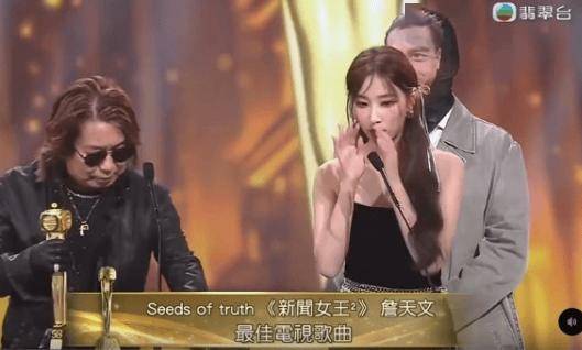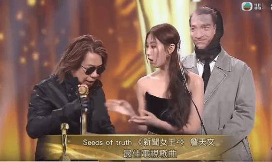 现年19岁的歌手詹天文(Windy)凭《新闻女王 2》插曲《Seeds of Truth》,在《万千星辉颁奖典礼 2025》中获得 “最佳电视歌曲” 奖,乐坛前辈林敏骢为其颁奖。谁料年纪