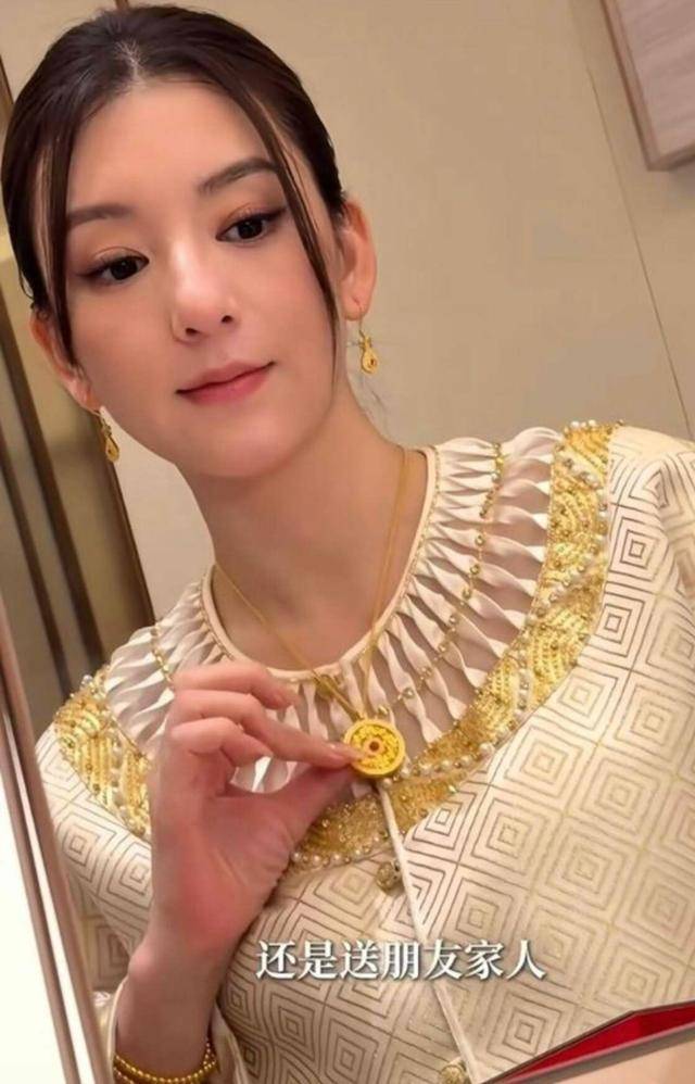 只见她乘坐着豪华汽车去到了金店,一身贵妇装的她手拿着价值20万的包包,一进首饰店就马上获得了店员们的热情款待。