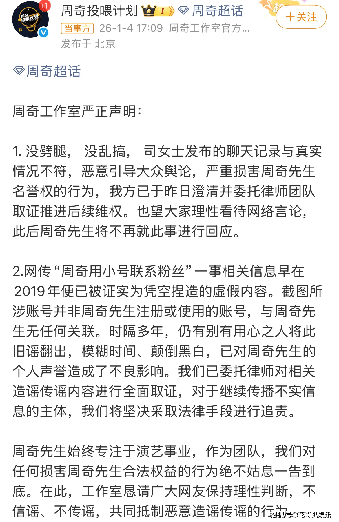 眼看舆论彻底失控,周奇工作室紧急发布声明。首先承认了和向涵之的恋情,对劈腿指控绝口不提,然后就是一堆乱七八糟的官话,不敢回应司晓迪。看得出来很心虚了。要知道周奇本就是圈内糊咖,靠着几部网剧和综艺刷脸,如今丑闻缠身,仅剩的粉丝也大批量脱粉,司晓迪算是成功带走一位男明星。