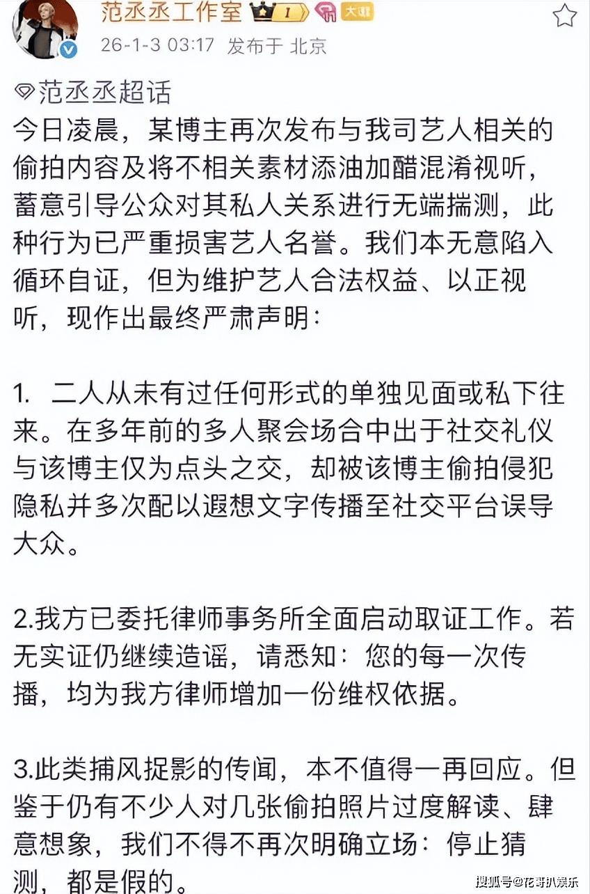 范丞丞工作室火速辟谣,坚称自家艺人与司晓迪只是点头之交,指责照片是司晓迪偷拍所得,涉嫌侵犯隐私。乍一看也没什么问题,只是点头之交也是有过交集,到底有没有深入的交集,这谁都不清楚,况且司晓迪晒出的照片中还有一张范丞丞和买超喝醉之后勾肩搭背的照片。
