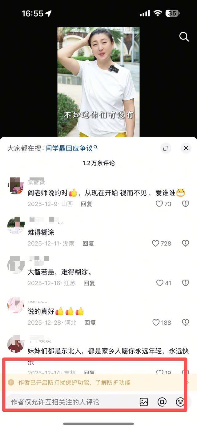 闫学晶的抖音账号,更是开启了“防爆模式”,评论区直接沦陷。