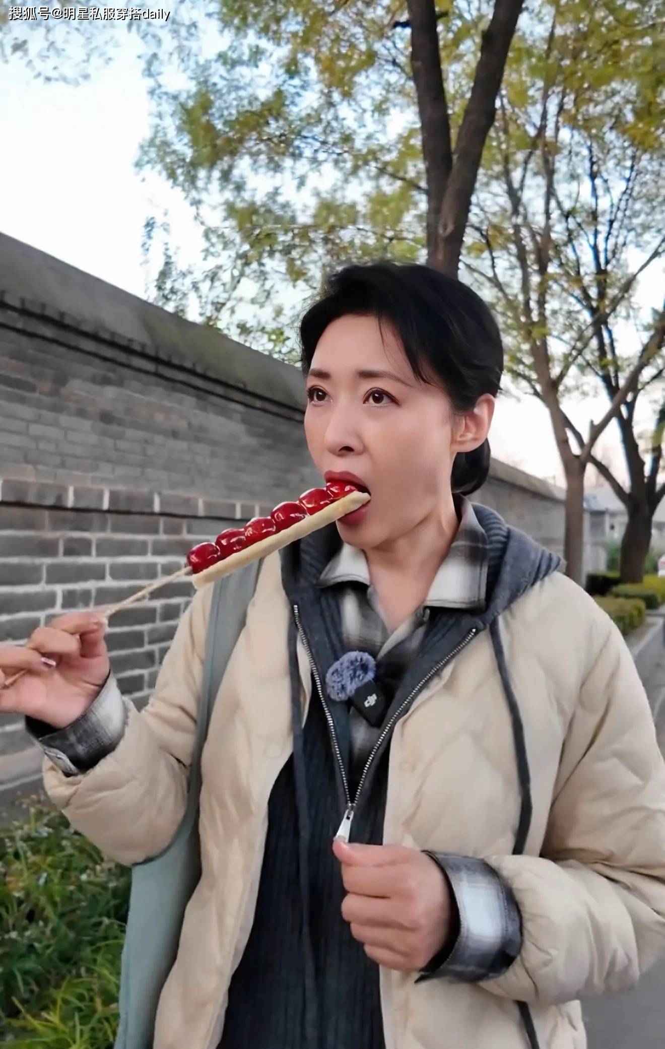 近期周涛现身手工作坊的模样,更是将这份温柔具象化——头戴棒球帽增添青春活力,认真专注的神情亲和力拉满;闲暇时走在街头品尝奶皮子糖葫芦,接地气的模样让人心生好感。而支撑这份气质的,除了她的仪态与状态,更离不开精准贴合年龄与风格的穿搭。从大衣到羽绒服,再到西装,周涛的每一套造型都藏着中老年女性的穿搭密码,实用又高级,值得细细拆解。