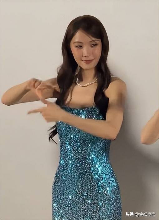 与此同时,剧中另一位演员张南,选择了亮蓝色的亮片裹胸裙,在灯光下闪闪发光,十分吸引眼球。这种材质对身材要求很高,但张南的身材比例优越,肩颈线条流畅,腰肢纤细,完美地驾驭了这条裙子。她的表情管理也做得很好,面对镜头时笑容得体,眼神坚定,既没有喧宾夺主,又凭借出色的穿搭给人留下了深刻印象。