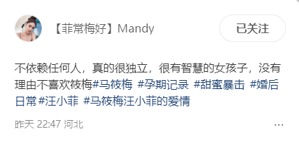 在1月6日,马筱梅晒出自己说的一段话,也是在直播的时候和网友分享的一段话:不依赖任何人,自己独自定月子中心,汪小菲甚至都不知情,毕竟天天那么忙,忙到一回家倒头就睡觉,而马筱梅对自己还是很好的,什么月子餐了、什么月嫂、月子中心,她都定完。