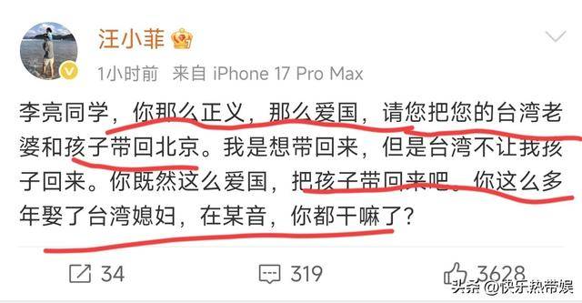 这真是不太成熟的表现,这样无厘头的发文属实没有意义,李亮和汪小菲之间的过节也就是账号被封禁,那也是平台的决定,跟李亮这个人没有太大关系,与李亮的家人更没有关系,就连很多的粉丝都看不下去,让汪小菲闭嘴了。