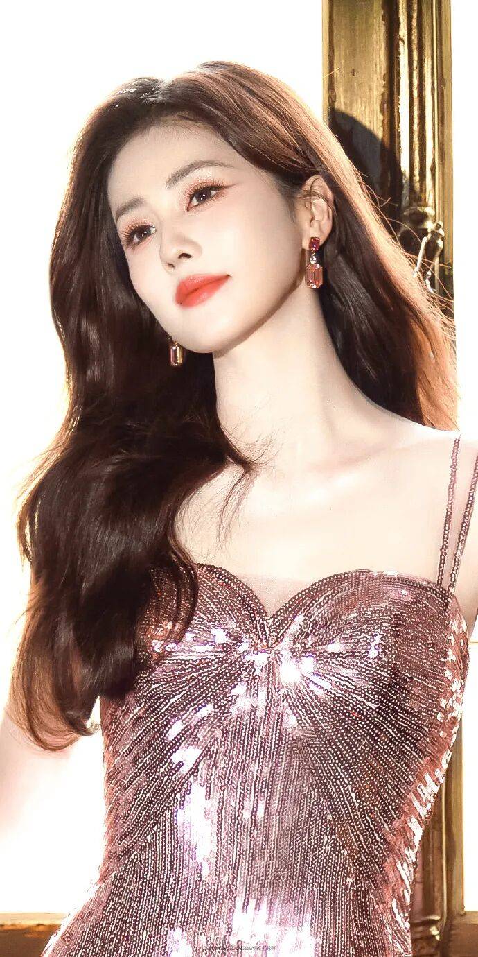 白鹿穿着粉色亮片衣裙,她俏脸清丽,侧身大秀魔鬼身材,绝对性感撩人!
