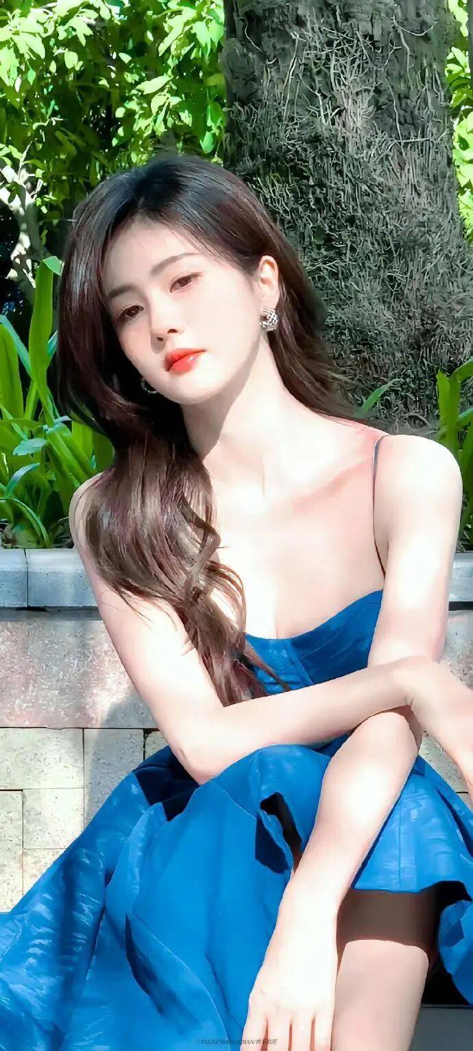 白鹿穿着蓝色吊带衣裙,她俏脸清丽,五官精致,乌黑的秀发飘逸,露出白皙的香肩和事业线,大美腿修长,绝对性感火辣!