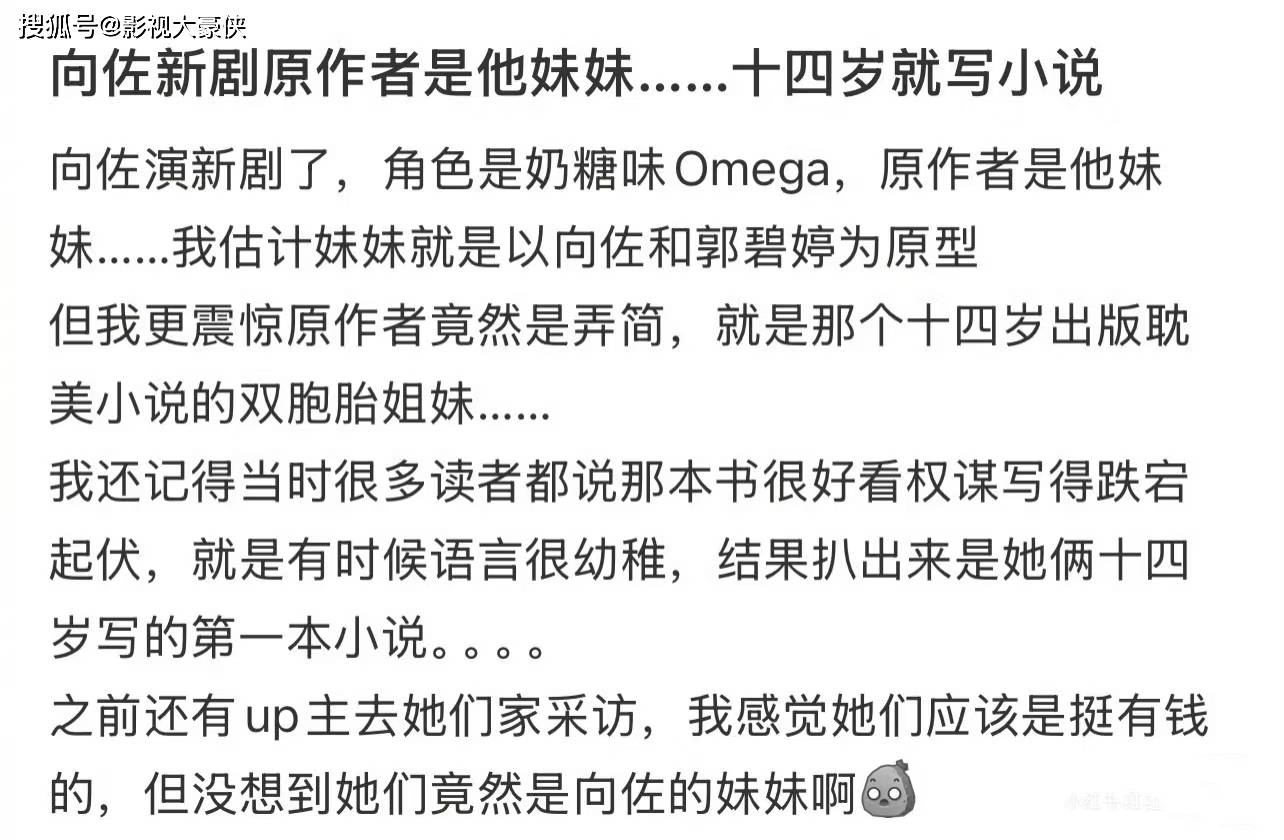 向佐两个表妹弄简写的作品曾轰动一时,据悉两人身份是富家女,双向奔赴,一个投资一级市场,一个则身为作者或者追星女存在,各司其职。在郭碧婷照料父亲的时候,向佐却被曝和表妹们在ktv畅玩。