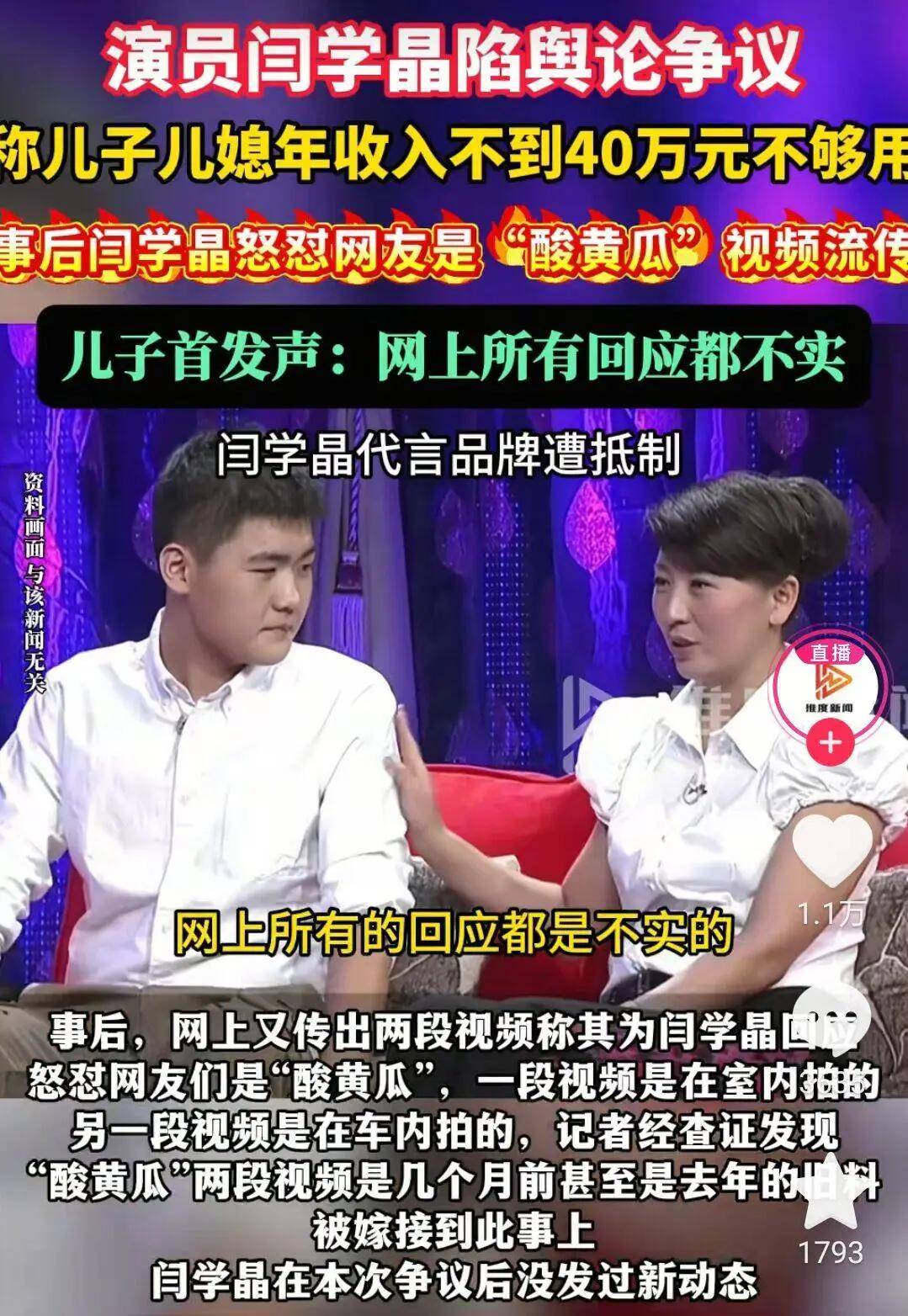 这也就是说,按照闫学晶儿子的说法,她(闫学晶)本人并没有在哭穷卖惨的话题冲上热搜后立刻回应质疑者,酸黄瓜视频是不良媒体人在移花接木(旧闻当成新闻)!