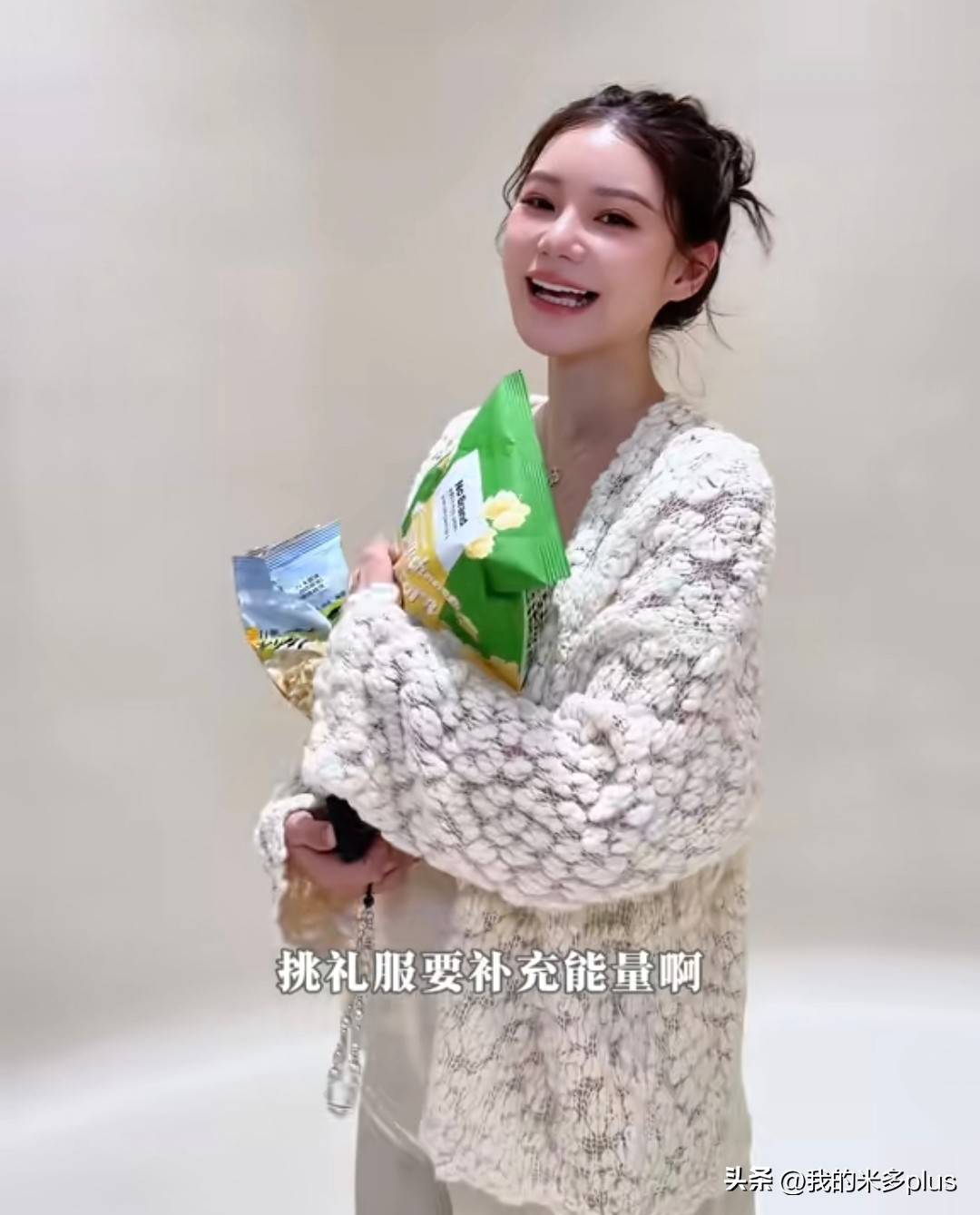 从侧面和背影看,她的身材曲线与孕前相比,并没有发生巨大的变化。虽然她每餐的菜品种类不少,但实际的进食量并不大,再加上她还坚持直播带货,一直保持着活力,所以整体看起来,身材并没有因为怀孕而显得臃肿。