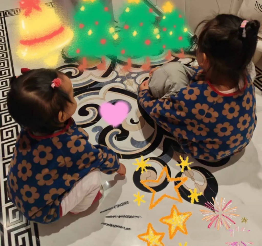 她在孕期还坚持拍戏,非常的敬业。两个女儿都很可爱、脚大腿长身型像爸爸,模样更加像妈妈,长大后一定是高颜值。