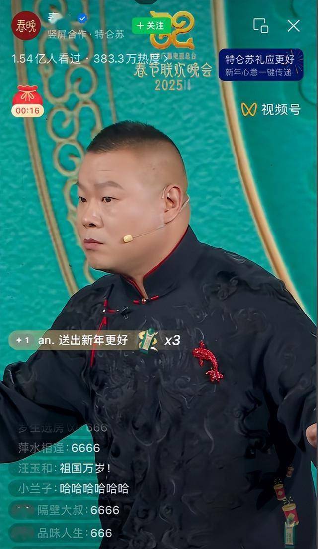 2025年除夕夜,已经第8次上春晚的岳云鹏和老搭档表演时,按照节目设计,岳云鹏需要走到观众席与现场观众互动,收集大家的新年建议。