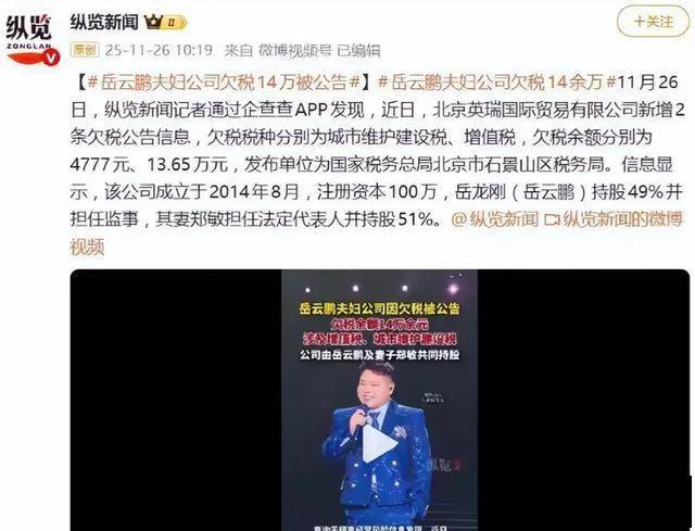 2025年11月,一则“岳云鹏夫妇公司欠税超14万元”的消息冲上热搜。