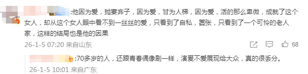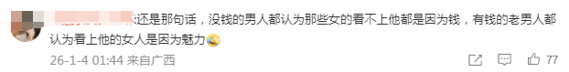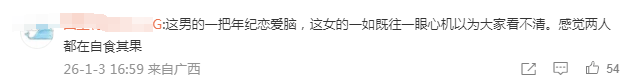 我都不想吐槽怎么是个男的“眼里没光”,网友就要开始怪他老婆了。哪怕看似中肯的“两个人都是自食其果”,也暗藏着对男方“一把年纪了还恋爱脑”的惋惜,以及对女方“那么心机还以为大家看不清”的鄙夷。
