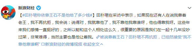 在她看来,她虽然嫁给了王石,但她是经济独立的,俩人刚认识时是她一直请王石吃饭,后来在一起了,她也没花过王石的钱,他也没帮她还过贷款,而且她不论婚前婚后,确实都有自己的事业。