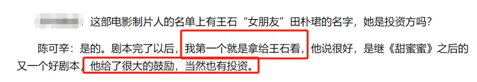 在当制片人这块,田朴珺一直骄傲于她做的第一部片子就挺成功,《中国合伙人》也确实是部好电影,可导演陈可辛自己也说了,之所以会给田朴珺挂名,是因为王石给了他极大的鼓励和投资。