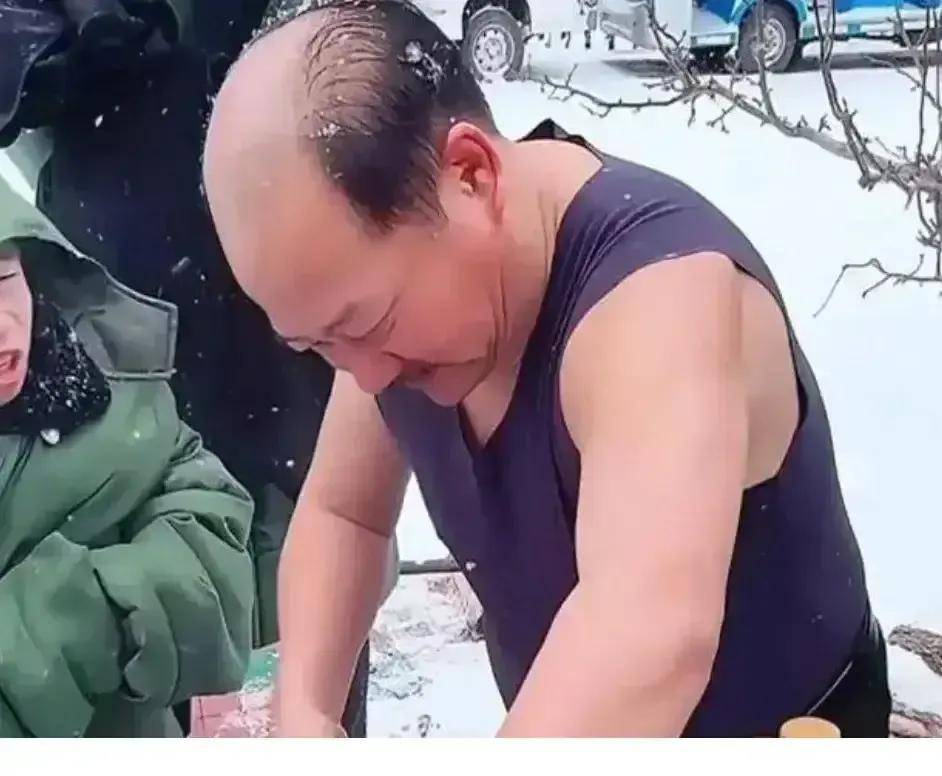 生活中的谢广坤确实很努力很拼搏,去年大雪天穿着背心直播带货。