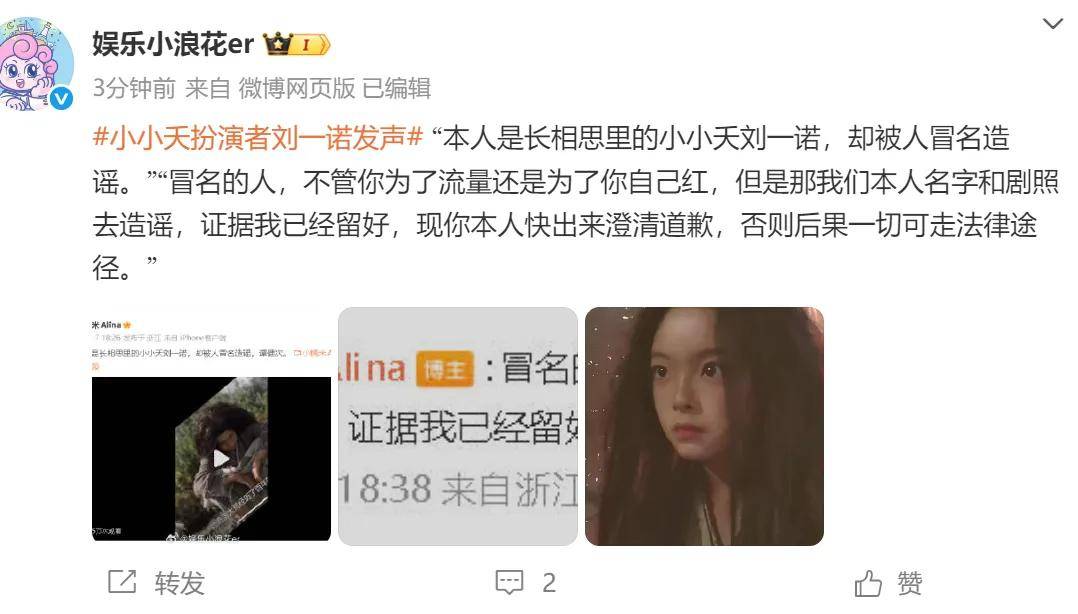 刘一诺与檀健次的年龄差是大家较为感兴趣的事,有网传她是出演了《长相思》的演员,还是未成年。而后,出演《长相思》的刘一诺出来否认自身是绯闻主角,怒斥冒充拿她剧照造谣的人。