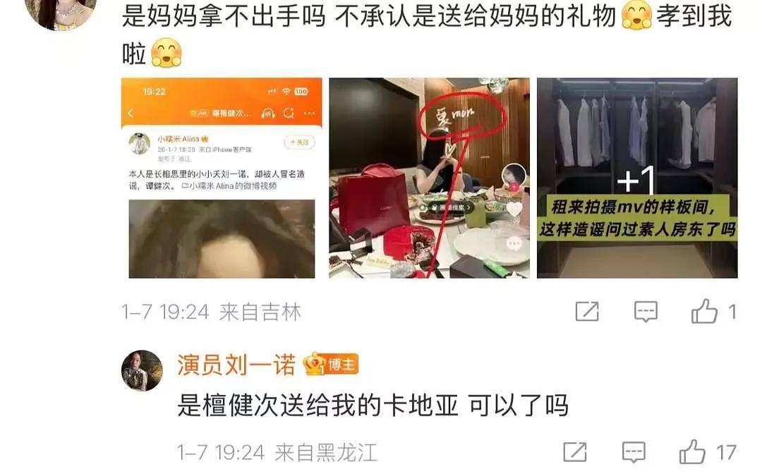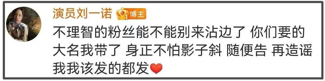 遇到不理智的粉丝攻击,刘一诺晒出辱骂的私信回应,奉劝他们别来沾边,还表示自己带了檀健次大名。从她的回应来看,粉丝们一直揪住她在礼物文案上的妈妈配文不放,硬要刘一诺承认礼物是妈妈送的而不是檀健次,而刘一诺也很强硬的表示就是檀健次送的,让檀健次随便告,并提醒粉丝“再造谣,该发的都发”。