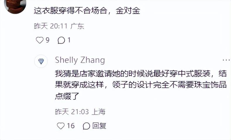 也有网友觉得她不太敬业,参加金店的宣传,还穿这么显眼的衣服,完全不突出身上的金饰,也没起到一点宣传作用。
