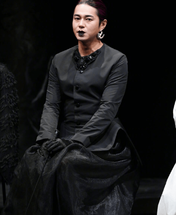 近日,日本男星东出昌大出席舞台剧首演前见面会,他一身黑色裙装搭配玫红挑染盘发,除此,更是涂上了黑唇并戴上了金属耳环,造型颠覆,让人认不出。
